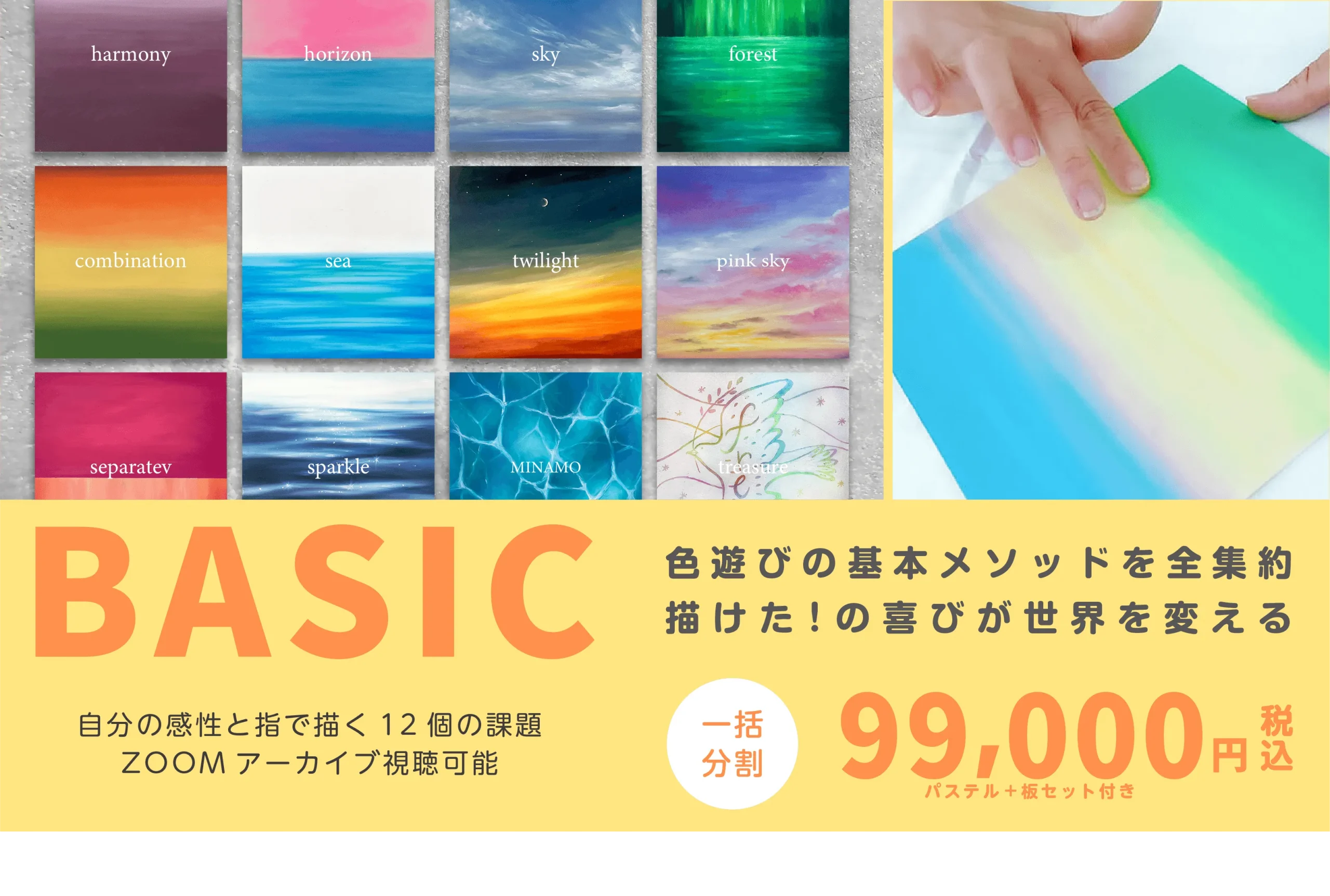 12の課題を通し、オイルパステルと自分の指だけで自由に色と遊び、
